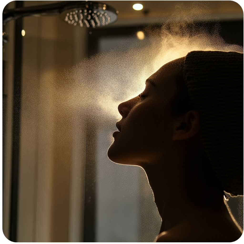 When chlorine or chloramines in water are heated during a shower, they can release volatile organic compounds (VOCs) and chlorine byproducts, such as trihalomethanes (THMs), into the air. These byproducts can be inhaled. Inhaling these chemicals during a hot shower may lead to higher levels of exposure than drinking the same water because the lungs absorb these compounds more efficiently.